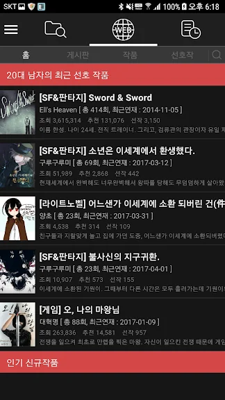 아래는 TIViewer (소설&만화 뷰어) 어플에 대한 스크린샷 정보입니다.