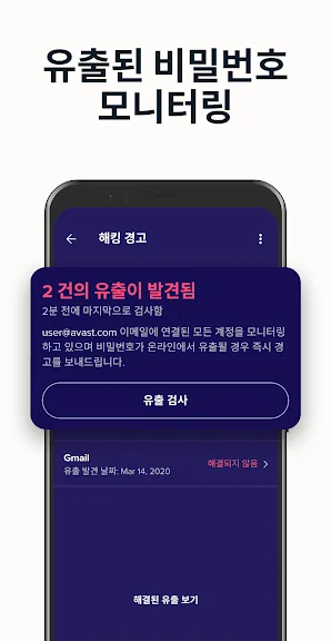 스파이웨어 또는 애드웨어에 감염된 앱이 디바이스에 다운로드되면 백신으로부터 경고를 수신하여 개인 정보를 보호할 수 있습니다. 이메일, 전화 통화, 감염된 웹 사이트 또는 SMS 메시지를 통한 피싱 공격으로부터 디바이스를 보호하세요. VPN을 켜면 해외 여행 중에도 안전하게 온라인 검색을 하는 것은 물론 즐겨찾는 유료 스트리밍 서비스에도 액세스할 수 있습니다. 해커들이 비밀번호를 탈취했을 때는 알림도 보내드립니다. 고급 검사 및 경고 기능으로 사기를 방지합니다.Avast의 신뢰할 수 있는 이메일 감시는 귀하의 이메일 계정에 의심스러운 이메일이 있는지 모니터링합니다.