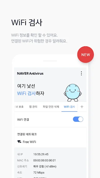 개인정보 보안이 취약한 와이파이가 연결되면, 탐지하고 알려주니까! 더욱 안전하게 인터넷을 사용할 수 있습니다.