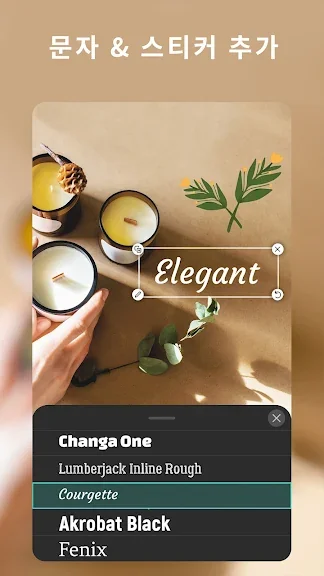 • 200여 개의 디자이너 폰트(한글 폰트 포함)로 사진에 텍스트 추가