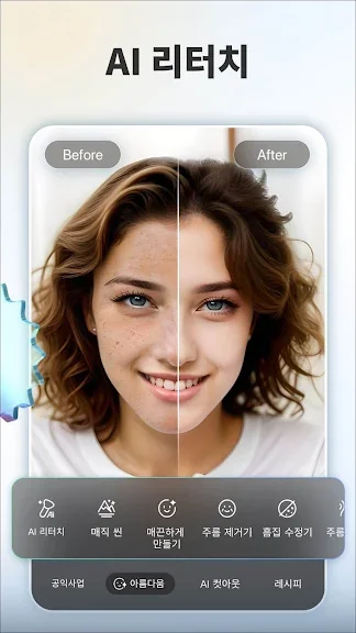 ・ 주름 제거, AI 피부 보정, 잡티 제거: 결점 없이 매끈한 피부 표현