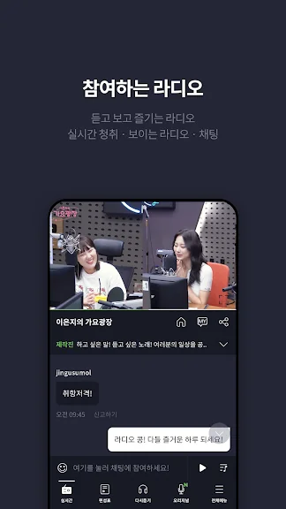 - "참여하는 라디오" 듣고 보고 즐기는 라디오! 실시간 채팅에 지금 참여하세요.
