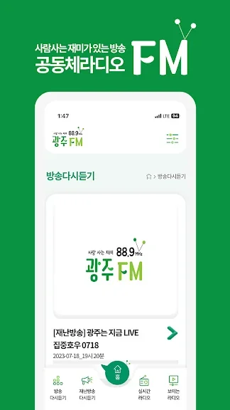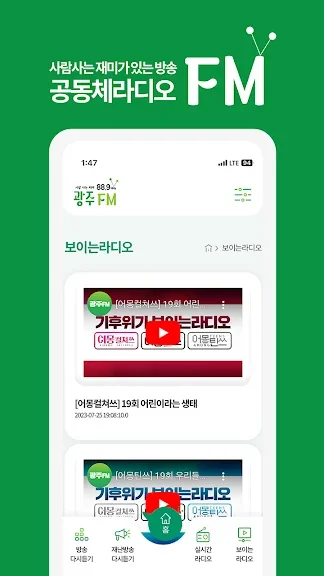 아래는 공동체라디오 어플에 대한 스크린샷 정보입니다.