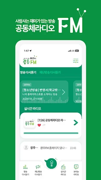 - 청취자들과 함께하는 실시간 채팅, 게시판, 사연 참여