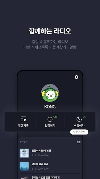 - 좋아하는 라디오로 당신을 깨우는 알람 기능
