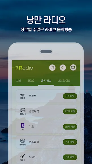 2) 낭만 라디오 - 알람, 한국 FM 라디오, 음악방송 어플 스크린샷