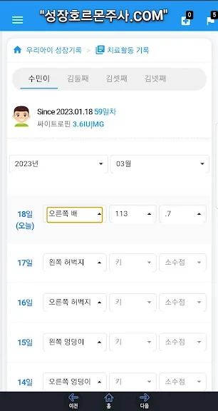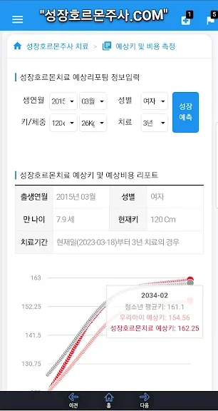 키 기록 및 예상키 조회 - 성장호르몬주사닷컴 어플을 만들어 주신 개발자님 감사합니다~