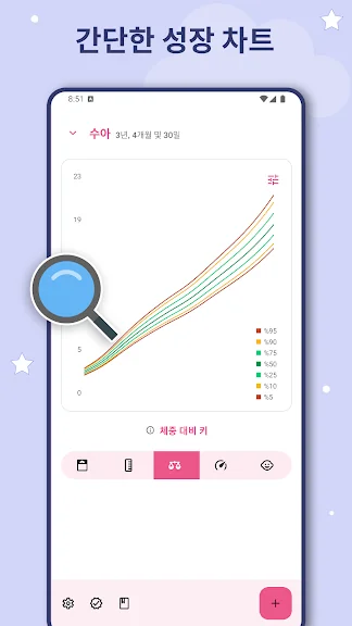 아기 성장 차트 어플에 대한 스크린샷 정보가 필요하시다면 아래 이미지를 참고하시기 바랍니다.