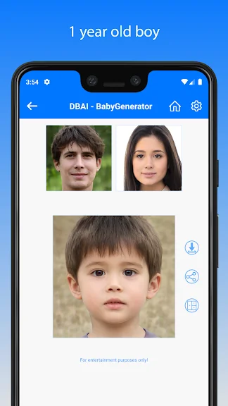 우리의 앱은 인공 지능의 최신 기술을 사용하여 얼굴 특징을 분석하고 미래 아기의 얼굴을 예측합니다.