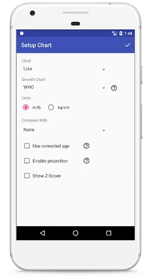 자녀의 차트 또는 백분위수 표의 이미지를 저장하여 공유하거나, 아기 책에 넣거나, 자녀의 담당 의사와 논의할 때 가져갈 수 있습니다. 데이터를 개방형 CSV 형식으로 쉽게 내보내고 가져올 수 있습니다. 성장 차트와 백분위수 표가 포함된 PDF 보고서를 생성합니다. 여러 자녀의 성장 곡선을 비교하거나 부모의 데이터를 입력하고 자녀를 부모와 비교합니다. 각 곡선의 끝까지 성장을 계획합니다.