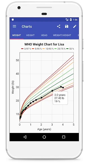 CDC, WHO, IAP(인도), 스웨덴어, 스페인어, 독일어, TNO(네덜란드), 벨기에, 노르웨이어, 일본 및 중국(및 기타!) 차트와 미숙아에 대한 Fenton 재태 연령 차트가 포함되어 있습니다. 모든 연령대의 체중과 BMI를 추적하기 위한 아기 및 성인 차트. 또한 CDC 및 IAP 권장 조합 차트(WHO-CDC는 2세에 전환, WHO-IAP는 5세에 전환)와 출생 시 WHO 곡선으로 보정된 연령을 사용하는 Preterm-WHO도 있습니다. 모든 백분위수는 병원에서 자주 사용하는 것과 동일한 고정밀 LMS 방법을 사용하여 계산됩니다.