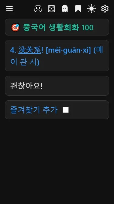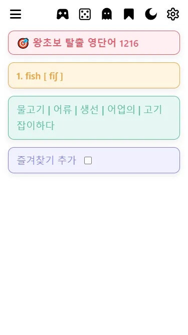 → 뜻 숨기기 모드를 켜면, 단어만 보고 의미를 떠올리는 연습이 가능해 장기 기억에 효과적입니다. 셀프 테스트용으로 매우 유용합니다.