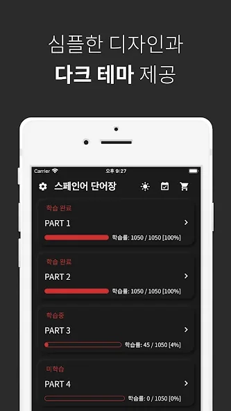 아래는 스페인어 단어장 어플에 대한 스크린샷 정보입니다.
