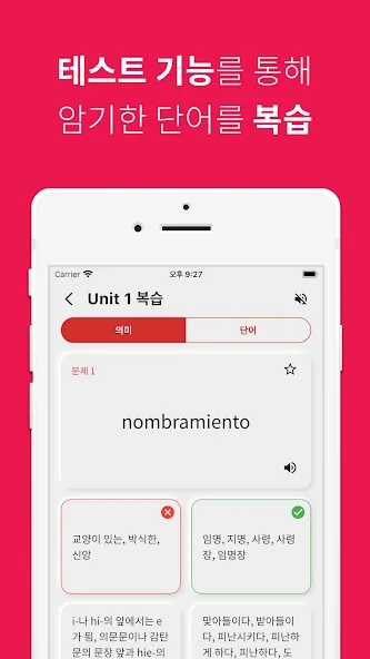 아래는 스페인어 단어장 어플에 대한 스크린샷 정보입니다.