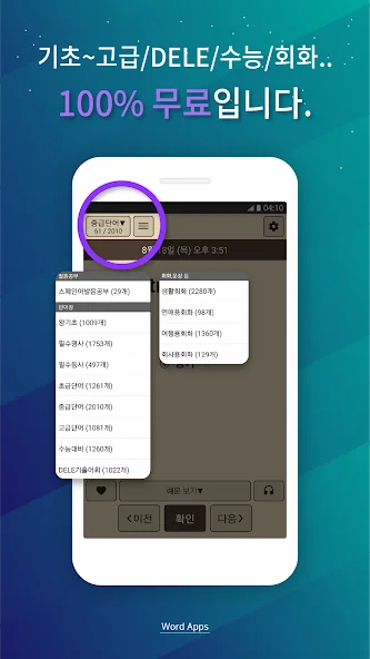 스페인어 단어장 어플에 대한 스크린샷 정보가 필요하시다면 아래 이미지를 참고하시기 바랍니다.