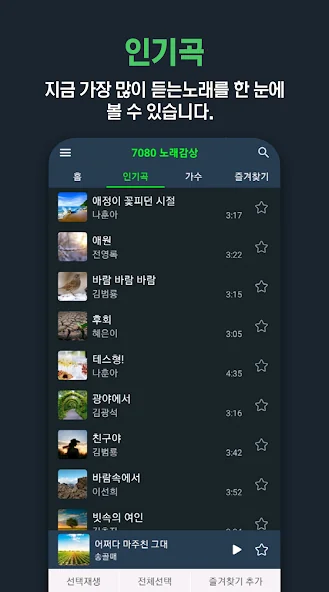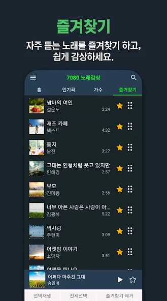 아래는 7080 음악감상 - 추억의 7080 가요 노래모음 어플에 대한 스크린샷 정보입니다.