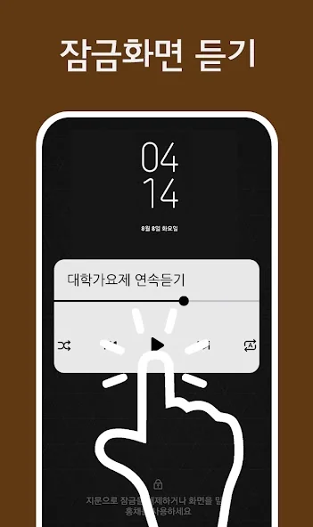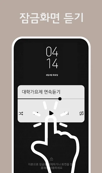 이 앱의 가장 큰 장점은 바로 간단한 사용법이에요. 회원가입 없이 바로 플레이가 시작되고, 화면이 꺼져도 음악이 계속 흘러나와서 산책하거나 운전할 때도 편리하게 감상할 수 있답니다. 큰 글씨 가사도 함께 보여주기 때문에, 노래와 가사를 함께 즐기기 좋아요.