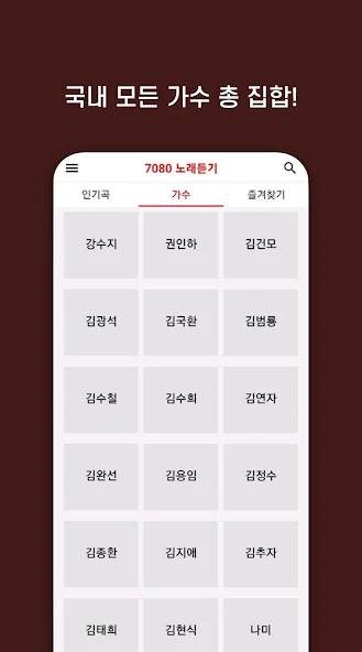 이 앱은 추억의 7080 가요를 가수별로 쉽게 찾을 수 있어서, 좋아하던 노래를 빠르게 찾아 들을 수 있어요. 차 안이나 산책할 때도 화면을 끄고 편하게 감상할 수 있고, 광고 없이 자연스럽게 이어지는 음악이 정말 좋아요.