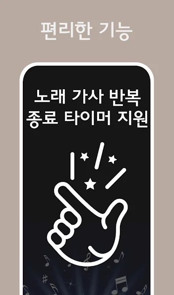 그리고 가수별로 정리된 노래, 즐겨찾기 기능까지 있어서 좋아하는 곡을 저장해 두기도 간편해요. 백그라운드 재생이나 타이머 설정 같은 편리한 기능들도 덧붙여져 있어, 일상 속에서 자연스럽게 음악과 함께하는 시간이 더 즐거워질 거예요.