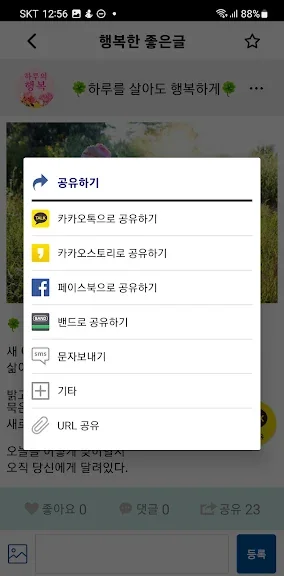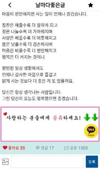 SNS 공유 기능을 통해 보다 쉽게 소중한 사람들과 좋은글을 나눠보세요