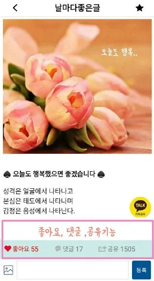 하루의 행복 좋은글 - 좋은글모음 좋은시 짧고 좋은글귀 어플을 만들어 주신 개발자님 감사합니다~