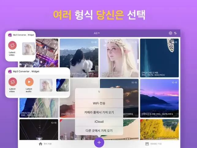 3. 클라우드 서비스에서 다운로드하거나 카메라 롤에서 가져옵니다.