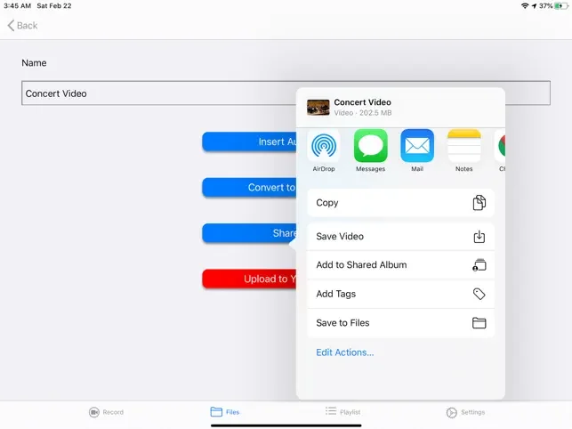 -비디오를 파일 또는 카메라 롤에 저장하십시오.