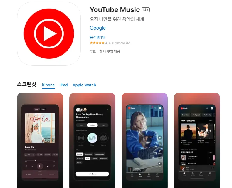 아래는 아이폰 YouTube Music 어플에 대한 자세한 설명입니다. 참고하세요.