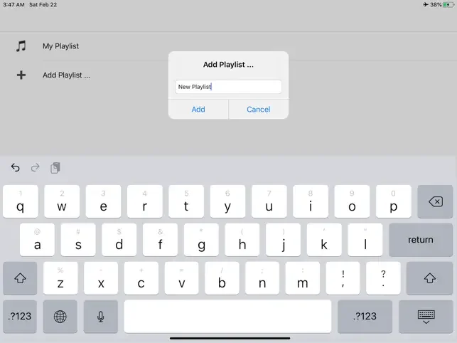 2. "재생 목록 추가"를 선택하고 새 이름을 입력하십시오.