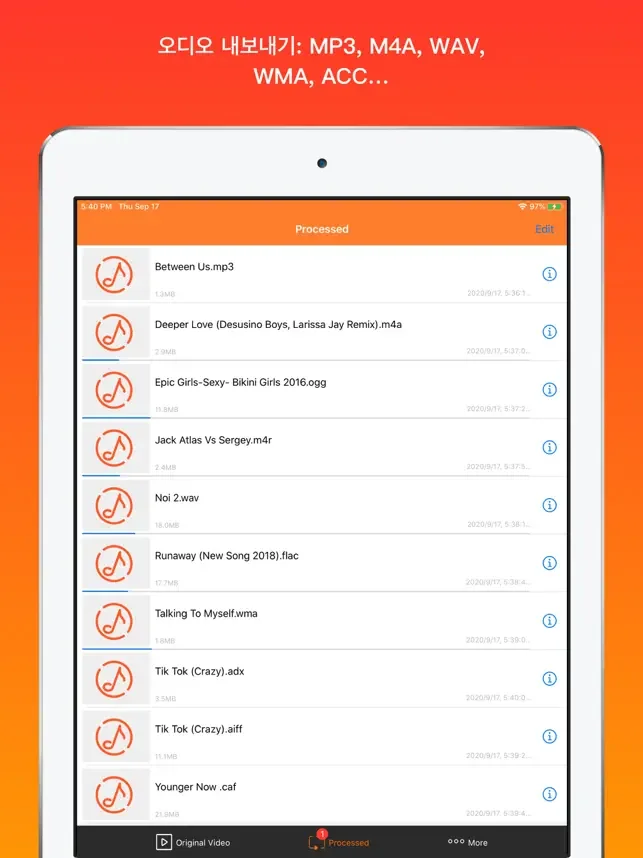 5. 아이폰 오디오추출 - 오프라인 비디오 파일에서 음악 추출 앱